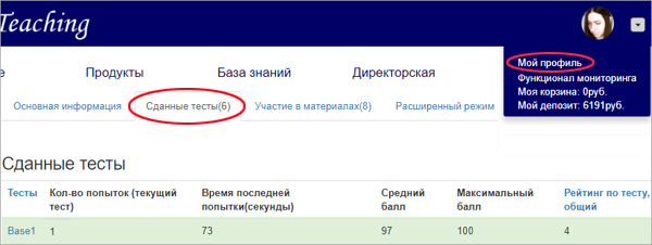 Результаты сданных тестов хранятся в профиле вашего аккаунта.
