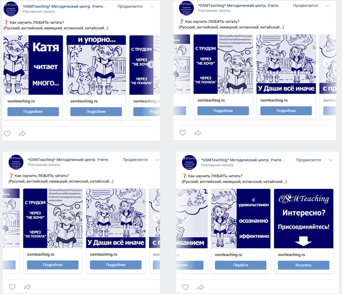 Пример оригинального варианта карусели из 6+1 карточек "Любить читать".