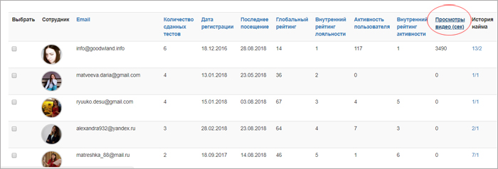 Проценты просмотра ключевых видео видны в профилях соискателей/сотрудников.
