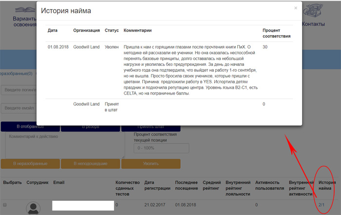 2.2. Ведение и просмотр истории найма.